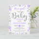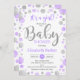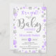 Convite para Chá de fraldas de Garota - Pontos Prateados Roxos Elegante design de prata roxa com brilho falso.