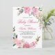 Convite de chá de fraldas personalizável com ilustrações feitas à mão de uma aquarela de rosas cor-de-rosa, hálito do bebê, folhas e folhagem. Perfeito para uma chá de fraldas e chás de fraldas primavera.