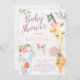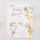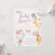 Convide seus amigos para comemorar em um chá de fraldas temático Safari ou Jungle com este adorável convite de chá de fraldas com animais bonitos de safari incluindo uma girafa, elefante e um leão!