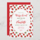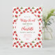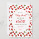 Convite para o chá de fraldas Berry Sweet com um padrão de morango e uma letra de escrita divertida. Perfeito para primavera e chás de fraldas de verão.