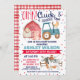 Meninos Convite para chás de fraldas com tema fazenda Os animais de criação de animais de estimação receberam o convite para chá de fraldas com quatro animais, dois estábulos e um trator azul. Excelente para colocar a cena para o chá de fraldas de um menino.