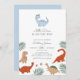 O convite ao Chá de fraldas tropical do Dinossauro apresenta dinossauros bonitos num cenário tropical com o ditado "um pequeno Dino está a caminho". Um convite simples, doce e elegante para um chá de fraldas.