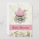 Convite para Chás de fraldas rosa e verde com Carruagem para bebês e rosas rosa