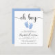 Um convite para chá de bebê virtual, amigável em orçamento, com "oh boy" em um roteiro de na moda com pestanas e uma cor de água azul pastel de pés de bebês. Por baixo, você pode personalizar facilmente os detalhes do chá.
