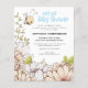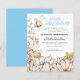 Um preço orçamentário menor, alternativo de papel de 4,5" x 5,6". Os envelopes são um extra opcional. Por momentos em que você não pode se reunir pessoalmente, uma festa virtual online é a próxima melhor coisa! Este design tem um belo abelhão na parte superior e grandes florais em branco e em pelúcia ao lado esquerdo e aos bordos inferiores. O cabeçalho principal Virtual Chá de fraldas está em um estilo artístico fixo em azul-bebê e o mesmo azul também está do outro lado. O resto do texto que você pode personalizar facilmente para seus próprios detalhes. Você também pode alterar as cores do texto se desejar através da opção Clique para personalizar mais, bem como as cores de fundo em ambos os lados, por meio da opção personalizar mais.
