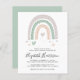 Um convite para chás de fraldas virtuais, bonito e amigável em termos de orçamento e com neutro em termos de gênero, com uma aquarela boho de um arco-íris verde, laranja e lavanda, com corações, o nome da mãe num roteiro de na moda e os detalhes do chá virtual em simples tipografia.