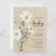 Este adorável convite para chás de fraldas de margarida apresenta margaridas brancas brilhantes e divertidas e flores silvestres amarelas e brancas. Perfeito para primavera ou chá de fraldas de verão.