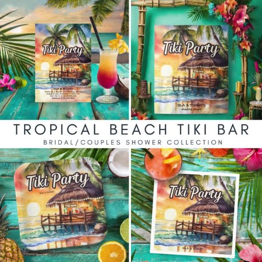 Tropical Beach Tiki Bar Couples Shower🍹🌺Criado por KL Stock