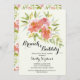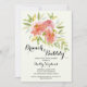 Lindas flores cor-de-rosa e vermelha e verde elegante em um fundo verde-claro destacam esses convites de chá de panela brinchosos e borbulhantes. CORRESPONDENDO a itens na nossa loja.
