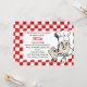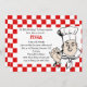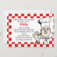 Um convite casual com um fundo de cheque vermelho e branco e um chef. Ideal para qualquer celebração e qualquer idade.O cartão é fácil de personalizar com seu texto, fonte, cor da fonte e escolha de seis tipos de papel.