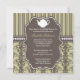 Este convite define a palco de um chá de panela que ela certamente ama. Uma doce silhueta de um chalé delicado com elegante marrom-choca, úmido verde-sábio e padrão de listras, tudo cria um design encantador com uma sensação francesa que é ajustado de um Chá de panela elegante para uma festa de chá.