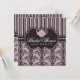 Este convite define a palco de um chá de panela que ela certamente ama. Uma doce silhueta de um chalé delicado com elegante padrão de damasco roxo preto e lavanda, tudo cria um adorável design com uma sensação francesa que é ajustado de um Chá de panela elegante para uma festa de chá.