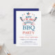 Convite de churrasco Fogos de Artifício Estrelas e Listras para celebração do Dia da Independência.