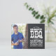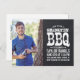 convite de festas legal de churrasco de graduação rústica com tipografia vintage angustiada sobre fundo chalkboard falso. Adicione a sua foto de mais velho e detalhes de festa de formatura na frente com uma segunda foto, seu nome, ano de aula e nome da escola ou outro texto no verso. Use as ferramentas de design para adicionar mais fotos e texto, editar fontes e cores para criar um anúncio e convite de festas de graduação exclusivos.