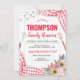 Este encantador convite para a Reunião Familiar apresenta o seu nome familiar, flores frescas fazendas e sotaques de gingham vermelho, perfeito para uma festa de piquenique ou CHURRASCO! Faça disso uma tradição anual e comemore a família, amigos, comidas e diversão num clássico verão se juntando!