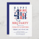 Convite para churrasco e festa de fogos de artifício do dia 4 de julho com tipografia moderna. Está isolado em um fundo branco, projetado para a celebração do Dia da Independência Americana. A tipografia pode ser personalizada em vermelho e azul.