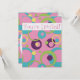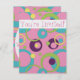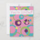 Um fundo rosa claro é adornado com um padrão estranho de círculos, pontos e anéis em uma variedade de cores vibrantes, incluindo azul, verde, roxo e amarelo.