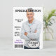 70 de convite de aniversário com modelo de revista para personalizar com a foto de seu aniversário. Todo o texto pode ser alterado.