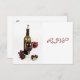Vinho e queijo jantam um convite para comemoração com um elegante, mas casual, com garrafa de vinho, vidro, figos e uvas.