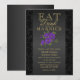 Flor Roxa e Preta - Coma, Beba e Seja Casado Convite de Casamento. ⭐Este Produto é 100% Personalizável. Gráficos e/ou texto podem ser adicionados, excluídos, movidos, redimensionados, alterados, girados, etc... 99% dos meus designs na loja são feitos em camadas. Isso facilita para você redimensionar e mover os gráficos e texto para que caibam perfeitamente em cada produto. ⭐ (Certifique-se de redimensionar ou mover os gráficos, se necessário, antes de encomendar) Você também pode "TRANSFERIR DESIGN" para outros produtos Zazzle e ajustar o design para se adequar à maioria dos itens da Zazzle. (botão está na parte inferior direita da página) Alguns dos gráficos de texto têm caixas prontas para serem preenchidas ou você pode clicar no botão "PERSONALIZAR" para adicionar, mover, excluir, redimensionar, cor de