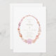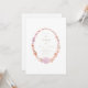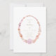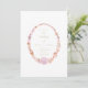Um convite simples e limpo, com uma moldura oval feita com cascas de água pintada manualmente, usando tons de pêssego, rosa, mauve e terracota. O texto é elegante e claro usando uma combinação de fontes clássicas em ouro.