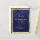 Na frente: Um cartão de convite de aniversário moderno e moderno para homens. Um fundo azul escuro, azul marinho. A cor azul é irregular. Com um falso quadro de ouro e um confete de ouro, letras coloridas de ouro. Modelos para informações sobre a sua parte. Fundo branco.
