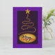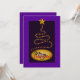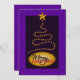 Abstrato Árvore de Natal © Sunny Mars Designs. Convites de Natal em roxo e ouro personalizáveis apresentam uma árvore de Natal abstrato feita de estrelas e uma estrela grande no topo, com as palavras "Feliz Natal" abaixo dela.