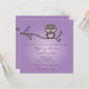 Uma coruja muito fofinha empoleirada num galho anunciando os detalhes da festa. Este convite pode funcionar para um chá de fraldas ou qualquer outro noivado como casamento ou aniversário. É também tão moderno e moderno. Aqui está a coleção de corujas inteiras: