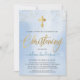Convidado de Natal moderno, elegante, com fundo azul de aquarela, elegante cruz de ouro, script de tipografia Christening em letra de ouro de tendência. Para editar este modelo, clique em personalizar mais.