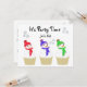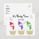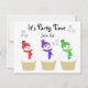 Três alegres cupcakes de homenzinho de neve criam o cenário para uma festa de aniversário ou uma festa de feriado. Cores brilhantes e pequenos flocos de neve ao fundo. Personalize com todas as informações da sua festa conforme desejado.