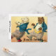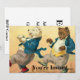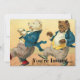 Dois ursos vestindo roupas dançando pelo chão. Abaixo, "Você é convidado" No verso, há lugares personalizáveis para você adicionar os detalhes do seu partido