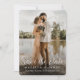 Anuncie os detalhes excitantes do seu dia de casamento com o nosso elegante Guarde os Convites de Data. Nossa design moderna mostra uma foto vertical impressionante que se estende até as bordas, A cobertura de texto branco adiciona um toque de sofisticação, complementando maravilhosamente a imagem do casal feliz.Escolha entre uma variedade de formatos e tamanhos de papel para adaptar o convite às suas preferências. A versátil ferramenta design permite que você personalize ainda mais esta foto, salve a modelo de data, permitindo que você faça modificações adicionais que se adaptem ao seu estilo e preferências. A cor colada de volta em uma matiz marrom quente adiciona um toque refinado, elevando a aparência geral e a sensação do convite.