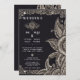 Este design de convite de casamento cativante apresenta uma canvas negra rica, lindamente contrastada por ornamentados, embelezamentos de ouros semelhantes a rendas. As bordas são enfeitadas com padrões florais e vinícolas intricadamente tecidos, criando uma moldura luxuosa que expele elegância e sofisticação. À direita, uma grande mostra de pétalas em camadas e reviravoltas deixa os desenhar atentos com seus belos detalhes e profundidade artística. No centro, um delicado emblema floral irradia charme, equilibrando perfeitamente o intrincado trabalho fronteiriço. Este design incorpora romance eterno e opulência, fazer ideal para uma celebração de casamento cheia de graça e grandiosidade.