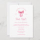 Celebre a noiva com estilo com o nosso convite "Bows & Babes Girls Club" e outros itens combinando! Com uma pintura em aquarela elegante de laços e fitas cor-de-rosa, este convite captura perfeitamente o espírito de uma despedida de solteira divertida e feminina.