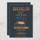 Convite de despedida de solteiro num design azul laranja e marinho com charuto e uísque. Personalize com os detalhes do seu partido.