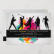 O convite perfeito para um atleta de qualquer idade. A carta apresenta cinco silhuetas jogando beisebol, golfe, futebol, basquete e correndo. Uma abertura de cores brilhantes cria o fundo.