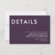 Mantenha sua carta de casamento elegante e simples com este Convite de Detalhes do Casamento Mínimo. Com um layout limpo e moderno com tipografia de eterno, este cartão é perfeito para compartilhar todas as informações importantes sobre o seu grande dia. Sua design minimalista garante que seus detalhes permaneçam o foco enquanto complementam qualquer estilo de casamento. Ideal para casais que apreciam elegância subestimada e estética contemporânea.