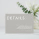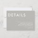 Mantenha sua carta de casamento elegante e simples com este Convite de Detalhes do Casamento Mínimo. Com um layout limpo e moderno com tipografia de eterno, este cartão é perfeito para compartilhar todas as informações importantes sobre o seu grande dia. Sua design minimalista garante que seus detalhes permaneçam o foco enquanto complementam qualquer estilo de casamento. Ideal para casais que apreciam elegância subestimada e estética contemporânea.