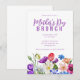 Um lindo jardim de flores silvestres decora o fundo deste convite a Brunch Dia de as mães. Tulipas vermelhas, margaridas brancas, flores de croco púrpura, papoilas vermelhas e nãos-esqueço-me azuis criam um display floral colorido. O texto do convite roxo complementa as flores. O dia de as mães é escrito numa combinação de fontes festivas. Este convite faz parte da coleção de flores silvestres Eternos. Você encontrará os itens necessários para criar não apenas um pacote exclusivo de convite para Dias de as mães, mas também hospedar o brunch.