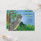 Um convite de dinossauro apresentando um T-Rex na selva profunda. (Vecteezy.com - dinossauros por freevector, floresta por freevector). O cartão é fácil de personalizar com sua redação, fonte, cor da fonte, opções de forma de papel e escolha de seis tipos de papel.