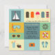 Um convite quadrado para aproveitar a diversão de verão e o sol. Apresenta brinquedos de água, guloseimas, equipamento desportivo e muito mais. Bem adequado para qualquer ocasião.