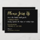 A configuração padrão de papel é semirrologia. A seleção matte é mais pesada. Nosso elegante convite à tipografia de ouro preto e falso é perfeito para sua próxima festa, festa jante, recepção ou evento corporativo.