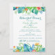 Este convite de casamento tropical colorido é perfeito para o casal que vai ter um casamento de praia havaiana, um casamento de praia na Flórida, ou um casamento de praia Caribe. Imagens aquáticas de hibisco, folhas exóticas, aves do paraíso, florais tropicais, abacaxis e palmeiras agridem o cartão na frente e no verso. Este convite apresenta azul, verde, rosa, laranja, amarelo e vermelho. A cor do padrão do canal lateral pode ser personalizada de acordo com sua preferência. Texto totalmente personalizável. Veja minha coleção completa de "Casamento Floral Tropical" para mais itens que você precisará para seu casamento exótico!