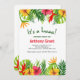 Folhas tropicais exuberantes e flores coloridas criam as bordas deste convite tropical. Perfeito para todas as celebrações com tema havaiano e de verão. (<a href='http://www.freepik.com/free-vector/exotic-floral-background_874892.htm'>Projetado por Freepik</a> ). <br/><br/>O cartão é fácil de personalizar com sua redação, fonte, cor da fonte e escolha de seis tipos de papel.<br/><br/>Não é exatamente o que você está procurando? Todos os nossos produtos podem ser personalizados para atender às suas necessidades sem custo adicional.<br/><br/>Basta entrar em contato conosco em askcottonlamb@gmail.com<br/><br/>Produtos coordenados disponíveis: