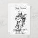 convite para minstrel de esqueleto: esta arte vintage é uma linda mulher de esqueleto vestida como um músico medieval tocando guitarra por volta de 1698. Seu convite e o evento aparecem na frente com bastante espaço para o seu próprio texto frente e verso.