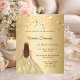 Um fundo com aspecto de ouro. Decorado com estrelas ouros e uma garota vestindo uma tiara e um vestido. Personalize e adicione um nome e detalhes. 1 folha = 1 convite impresso de borda a borda.