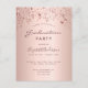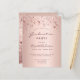 Um cartão de convite feminino e glamouroso para uma festa de formatura. Glamoroso com elegante e moderno fundo metálico falso de ouro rosa e decorado com estrelas rosa de ouro. Personalize e adicione um nome e detalhes da parte. O texto Graduação e o nome são escritos com um script de estilo manuscrito moderno. Texto rosa dourado escuro. Fundo: fundo rosa ouro e estrelas.