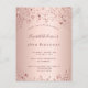 Um convite moderno, na moda e glamouroso para a 18ª festa de aniversário de uma menina. Um fundo metálico rosa dourado falso com uma elegante estrela rosa dourada girando. O nome é escrito com um moderno e escuro, rosa dourado, escrito com letra de estilo manuscrito. Modelos para os detalhes da sua festa. Fundo: rosa dourado. Dica: Se você não quiser que pareça um cartão postal, clique em personalizar, vá para o verso e remova o divisor e o carimbo de posto.