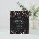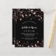 Um fundo preto clássico, decorado com estrelas douradas rosa. Personalize e adicione um nome e detalhes da parte. 1 folha = 1 convite impresso de borda a borda.