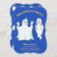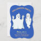 Bonito convite para fantasmas de Halloween e Munchy. Há um padrão fantasma sobre fundo azul no verso. Todos os textos e números estão prontos para serem personalizados.
